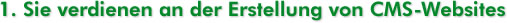 Als Ihr Dienstleister stellen wir Ihnen ein erstklassiges und modernes Content Management System (CMS) zur Verfügung. Damit können Sie Ihren Kunden konkurrenzlos günstige Websites auf eigenen Namen und eigene Rechnung erstellen. Unsere Zielgruppe sind kleine und mittlere Firmen. Diese wollen ebenfalls ein CMS - aber möglichst wenig dafür bezahlen. Deshalb gibt es das Worldsoft-CMS schon ab 2,90 Euro pro Monat! Haben Sie noch keine Erfahrung mit Content Management Systemen? Wir helfen Ihnen: