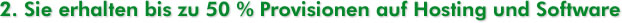 Wir bringen die Webseiten Ihrer Kunden ins Netz. Auf diese Umsätze bezahlen wir Ihnen bis zu 50 % Provisionen. Monat für Monat! So können Sie sich ein schönes und stabiles Zusatzeinkommen aufbauen. Wir sind ein Qualitäts-Hoster mit bewährter "Schweizer Qualität", der auf Firmenkunden spezialisiert ist: